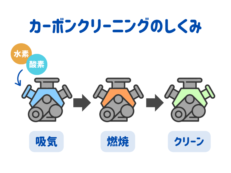 エンジン内部に蓄積したカーボン(燃えカスやスス)を、水素と酸素の力で安全に除去する新しいエンジンケアです。